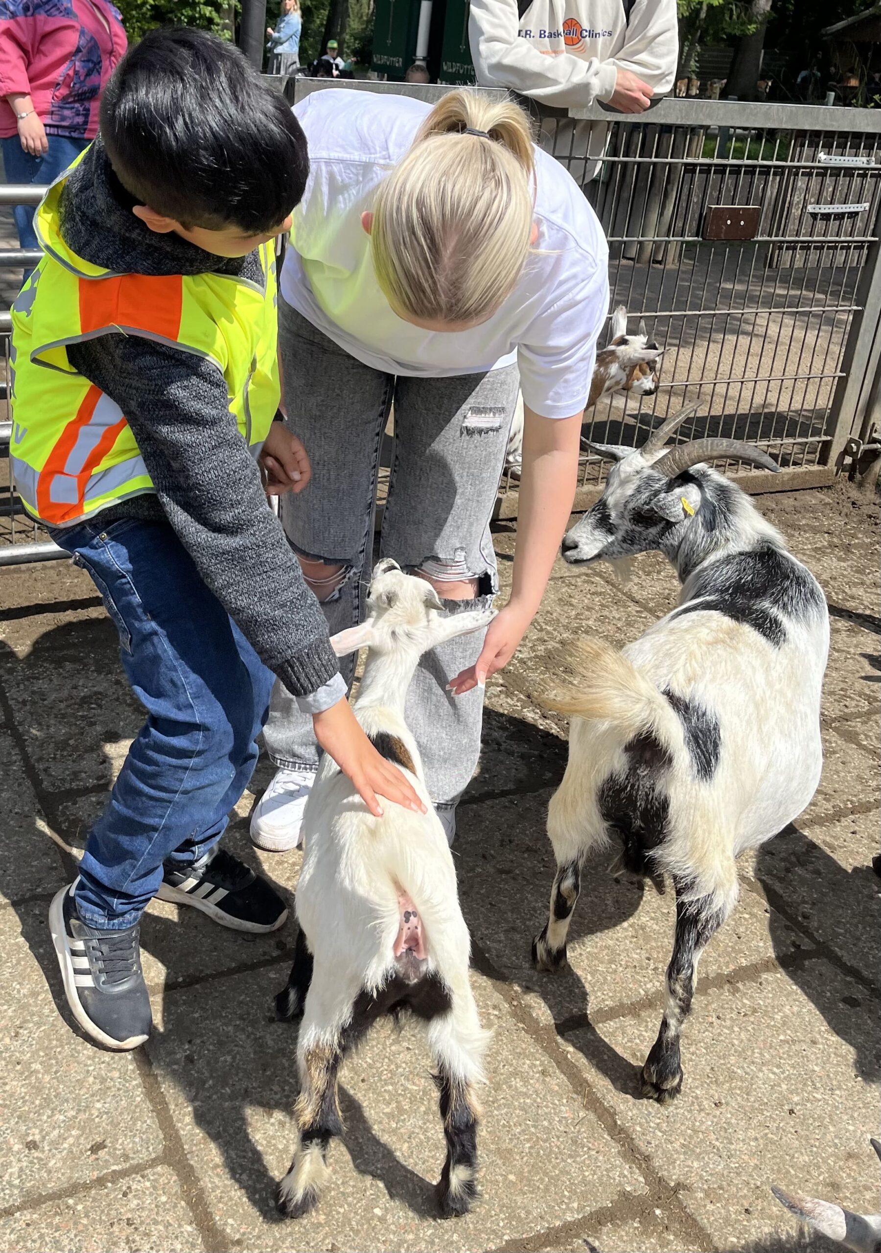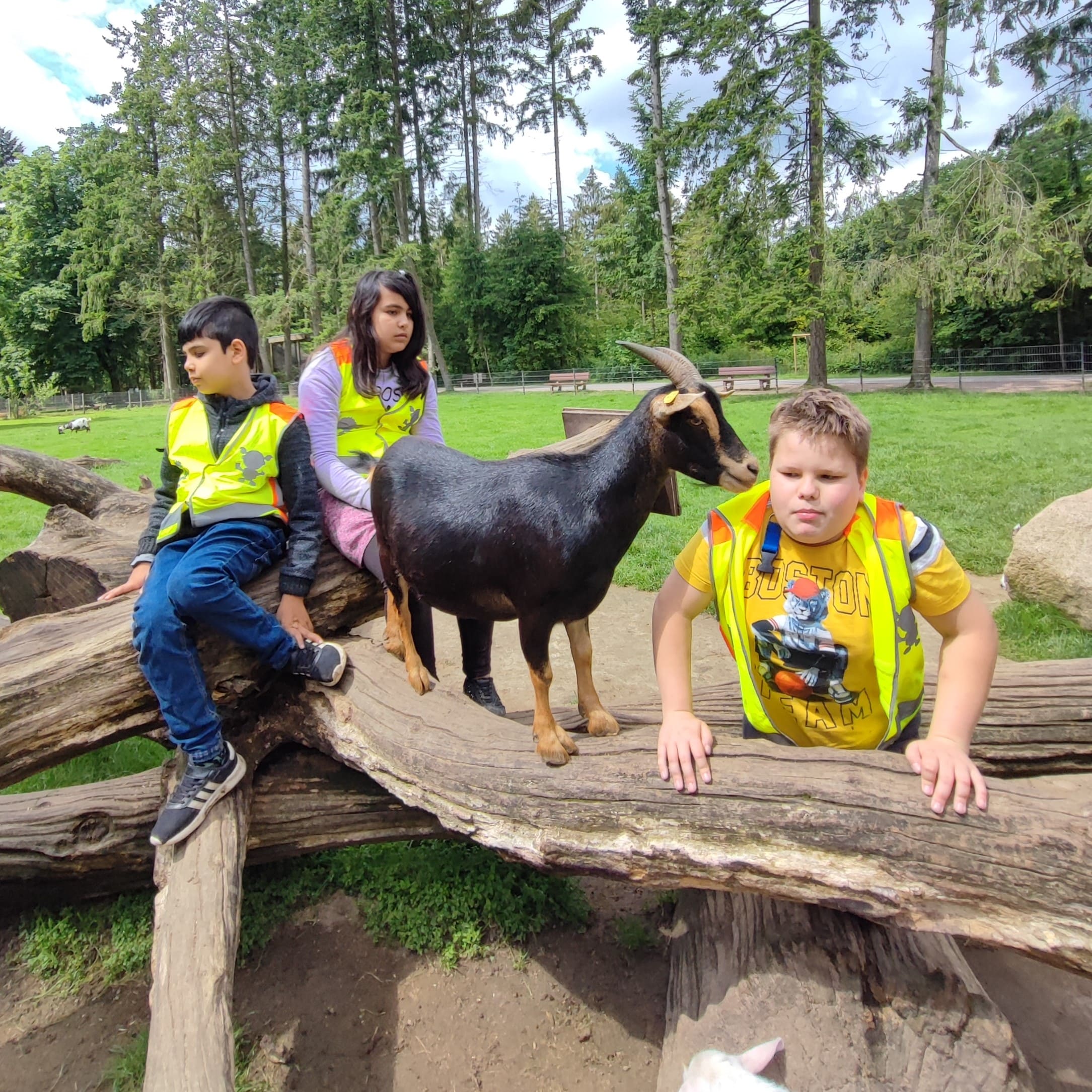 Als wir später zu den Ziegen ins Streichelgehege kommen, sind wir schon richtige Profis und trauen wir uns alle rein. Die Ziegen können gar nicht genug von unserem Futter bekommen!