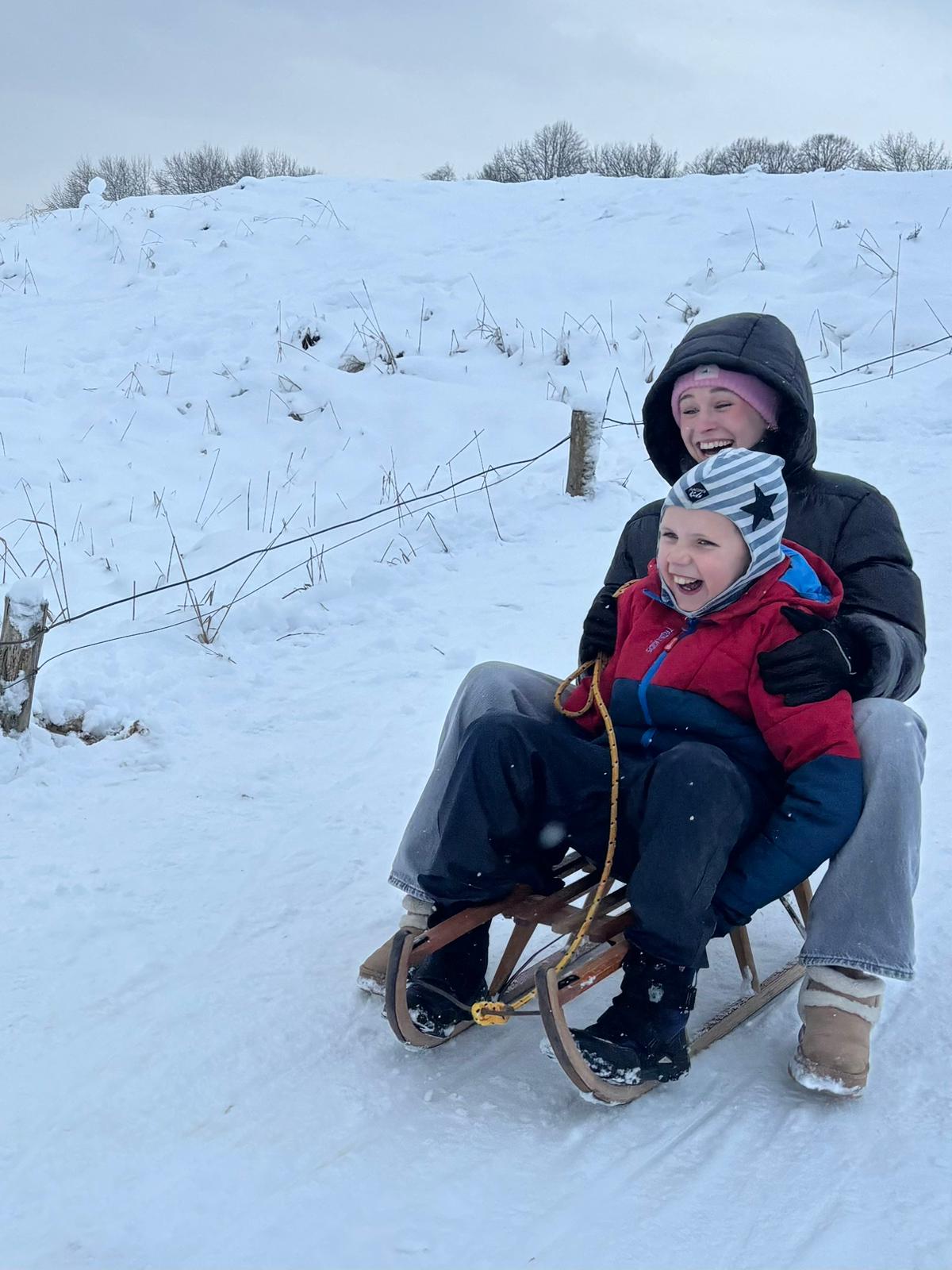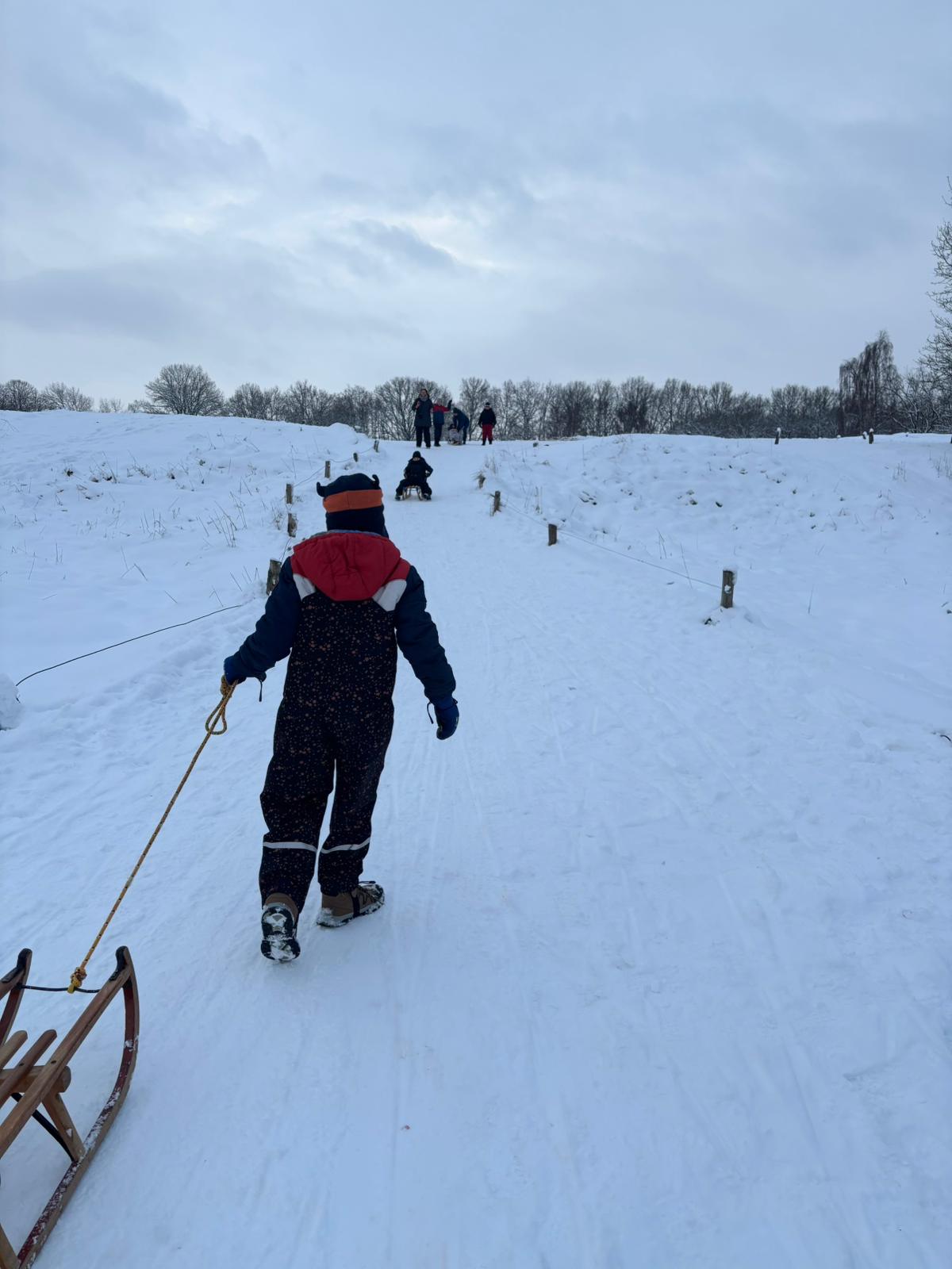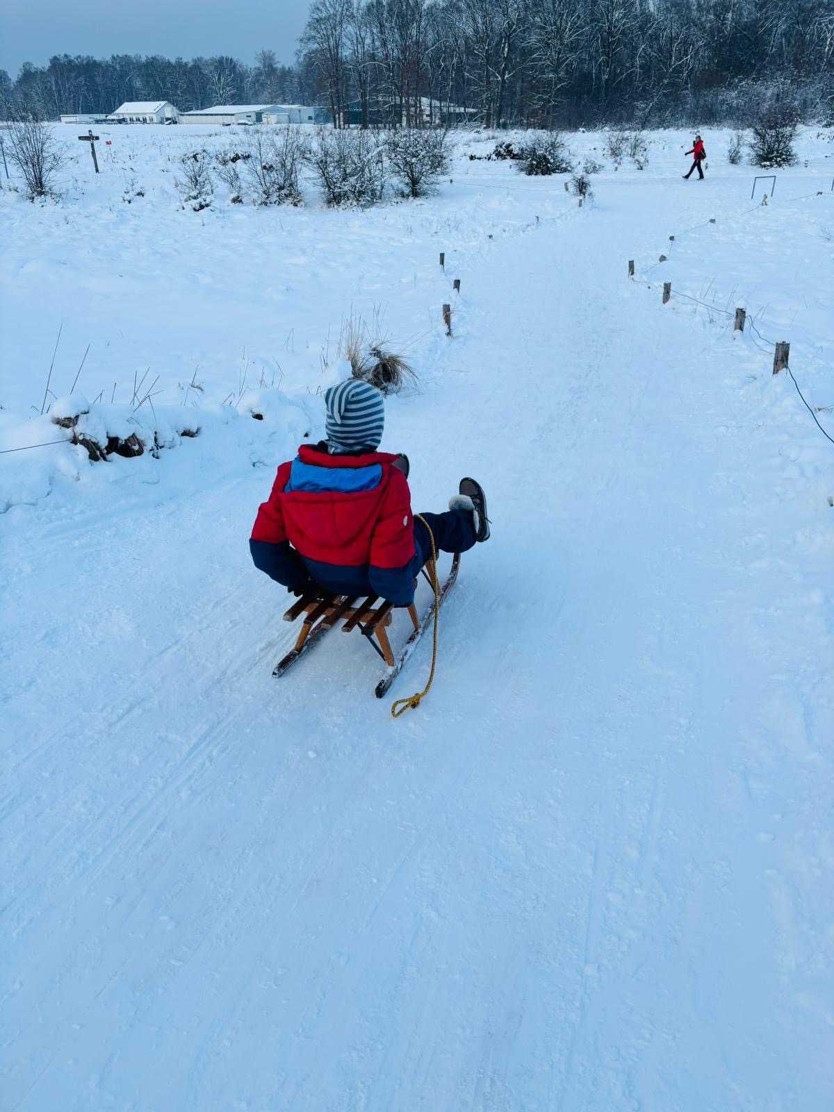 Was wäre der Schnee ohne eine richtige Abfahrt? Das absolute Highlight in dieser Woche waren die Ausflüge ins Naturschutzgebiet Boberger Dünen. Wo wir sonst im Sand wandern, hieß es jetzt: Schlitten raus und ab auf die Piste!